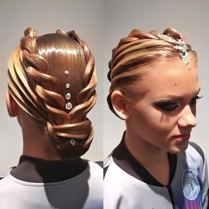 Прическа для спортивно-бальных танцев требует к себе особого отношения. Она отличается предельной гладкостью, блеском и необычными узорами. В качестве декоративных элементов могут быть использованы стразы, диадемы, гребни, заколки, шпильки, сетки и многое другое.