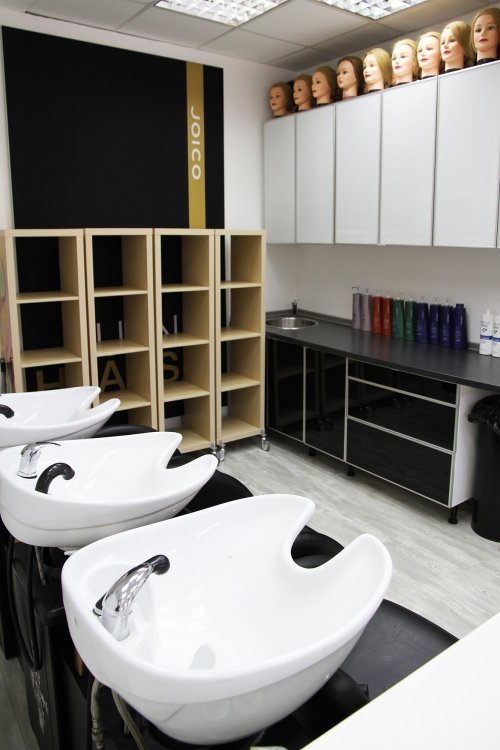В рабочей зоне 3 мойки, 4 рабочих парикмахерских места.